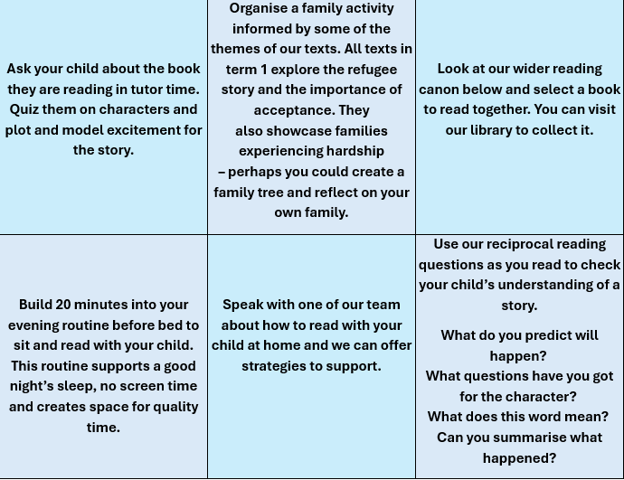 - Have recommended Reading Lists for all year groups along with challenge lists to widen our cultural literacy.